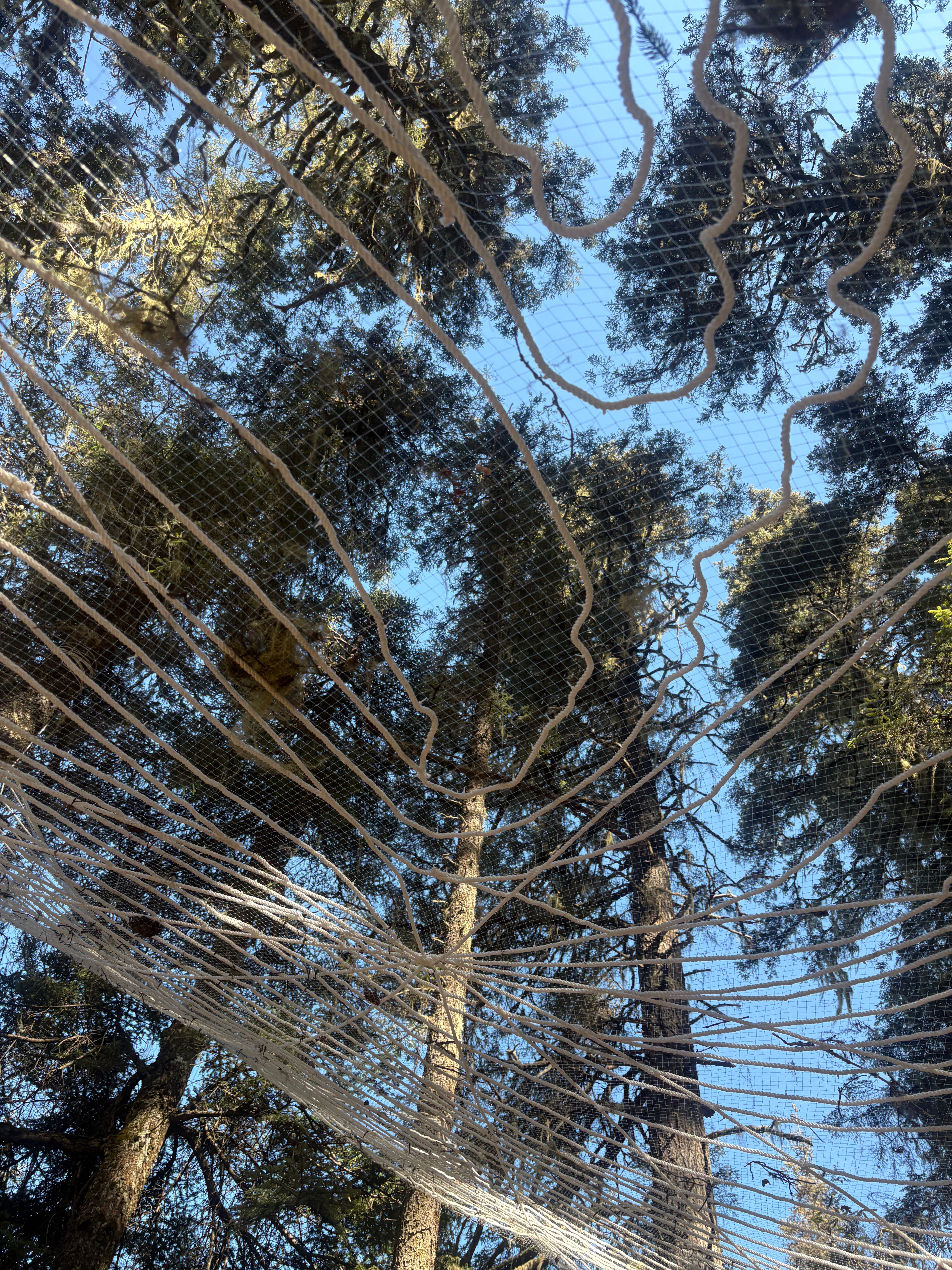 Our favourite works were the interactive installations that responded to other elements in the forest materially, through light, sound, colours, site-specific material, soil. A few caught on the idea of a spiderweb, catching falling cones, branches and leaves, a form of recording the metabolism of the forest.