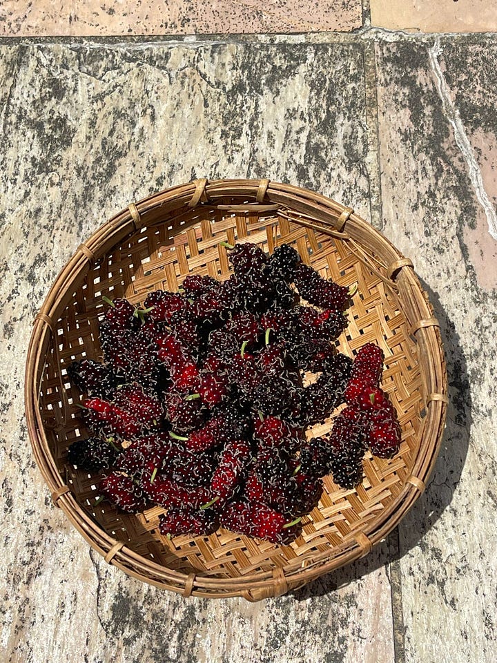 There was bountiful harvest from our mulberry tree from our recent studio workshop where we explored fibres, colours, and foodmaking with just this one plant.