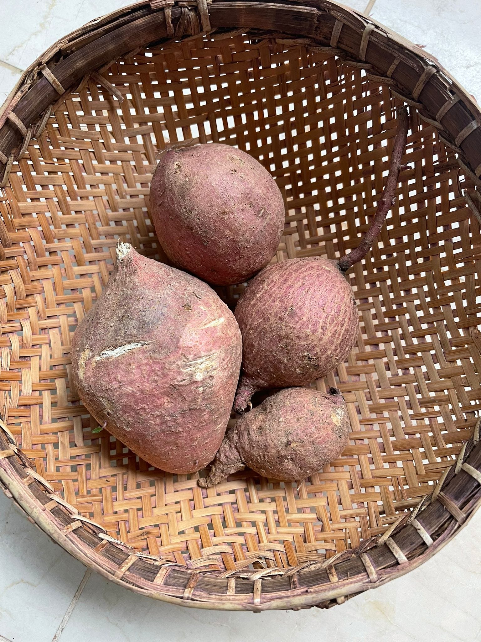 While resets involve lots of pruning, digging, and germinating of new seedlings, there is also harvesting. We were surprised to unearth decent-sized sweet potatoes growing all these time, relatively unbothered by all the changes happening around them despite being rooted in a tight soil space.